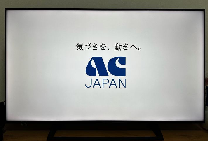19日早朝のフジテレビ。ACジャパンの広告が流れていた