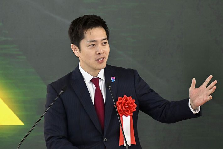 大阪メトロ中央線の新駅「夢洲駅」の開業式典であいさつする大阪府の吉村洋文知事=2025年1月18日、大阪市此花区