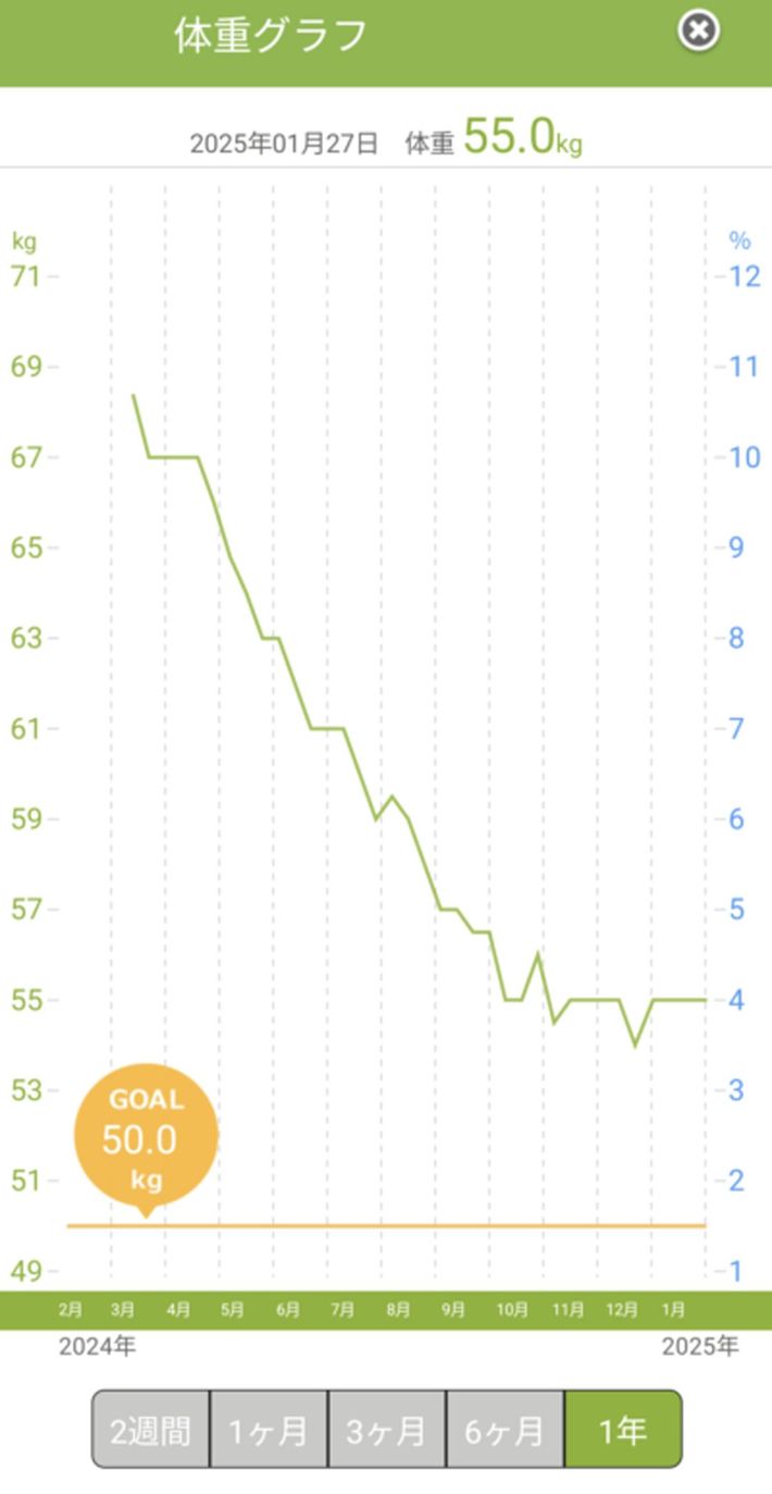 最初こそ苦労したが、やせ始めてからは順調に減っていった(画像提供=あすけん)