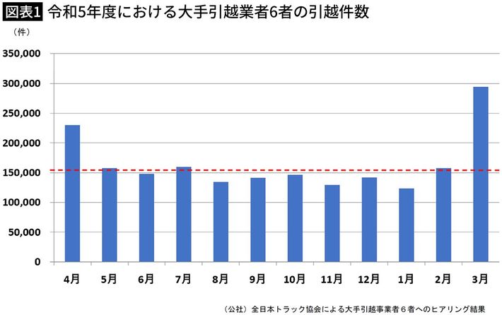 大手引越事業者の月別引越件数