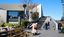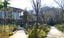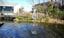 カスケードの上から見たGREEN SPRINGS(右)。すぐ脇には多摩モノレールが走る