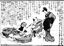 振り売りの魚売りが、注文の鯛をおろしているところ。客である女房は大きな皿を持って待っている。『四十八癖』二編 文化10(1813)年。[出所=『