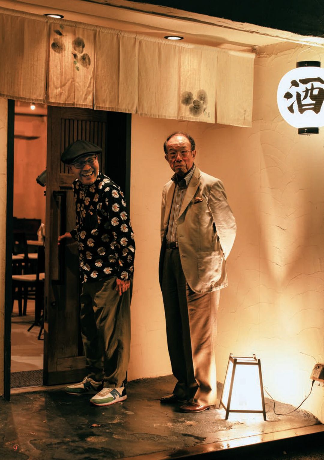 江戸の呑み事情に思いを馳せて、東京・芝大門の「江戸前 芝浜」にやってきた漫画原作者の久住昌之さん(左)と食文化史研究家の飯野亮一さん。[出所=『