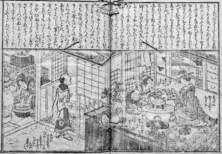 図版1:「上」クラスの妾の家の様子[十返舎一九ほか『磯ぜせりの癖 3巻』1813年(文化10)。