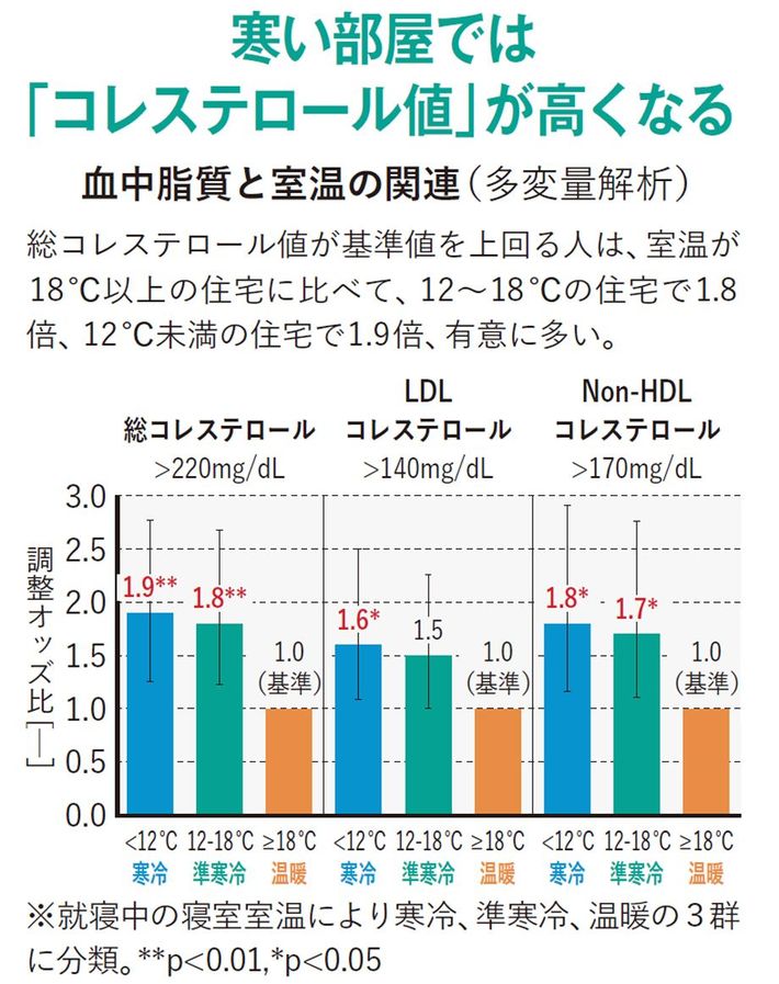 「18度未満の部屋」ではコレステロール値が高くなる…最大で1.9倍のリスク上昇