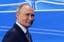 2025年3月18日、ロシア産業企業家同盟の年次総会に出席したロシアのウラジーミル・プーチン大統領