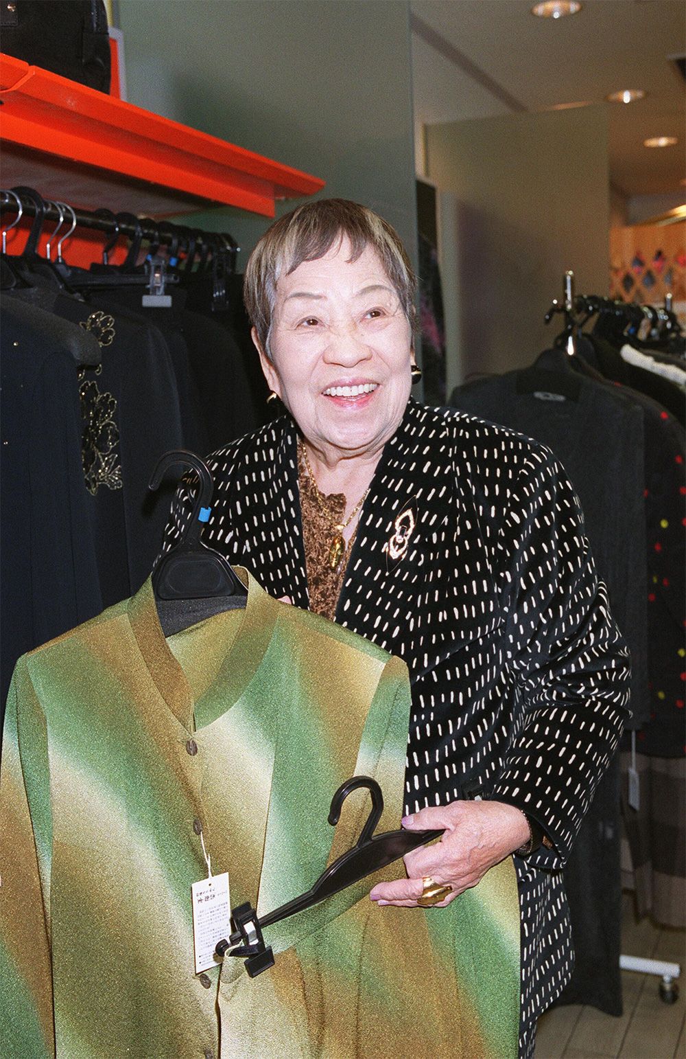 デザイナーの小篠綾子(コシノアヤコ)、大阪・岸和田市の自宅で2001年12月10日撮影