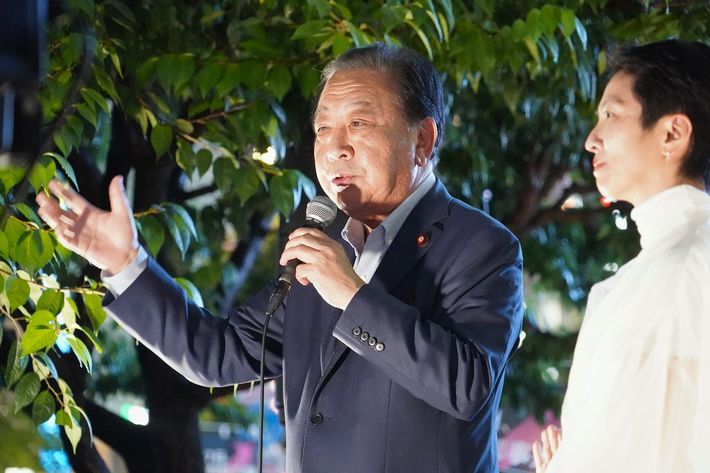 都知事選に立候補した蓮舫の応援演説をする野田佳彦(=2024年7月6日、新宿駅前)(写真=Noukei314/CC-BY-SA-4.0/