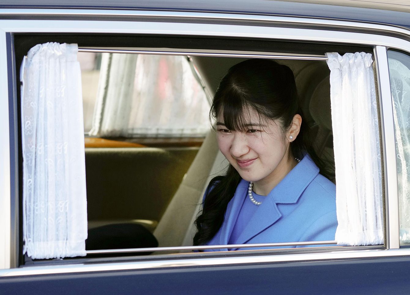 北極域研究船の命名・進水式を終えられた天皇、皇后両陛下の長女愛子さま=2025年3月19日、横浜市磯子区