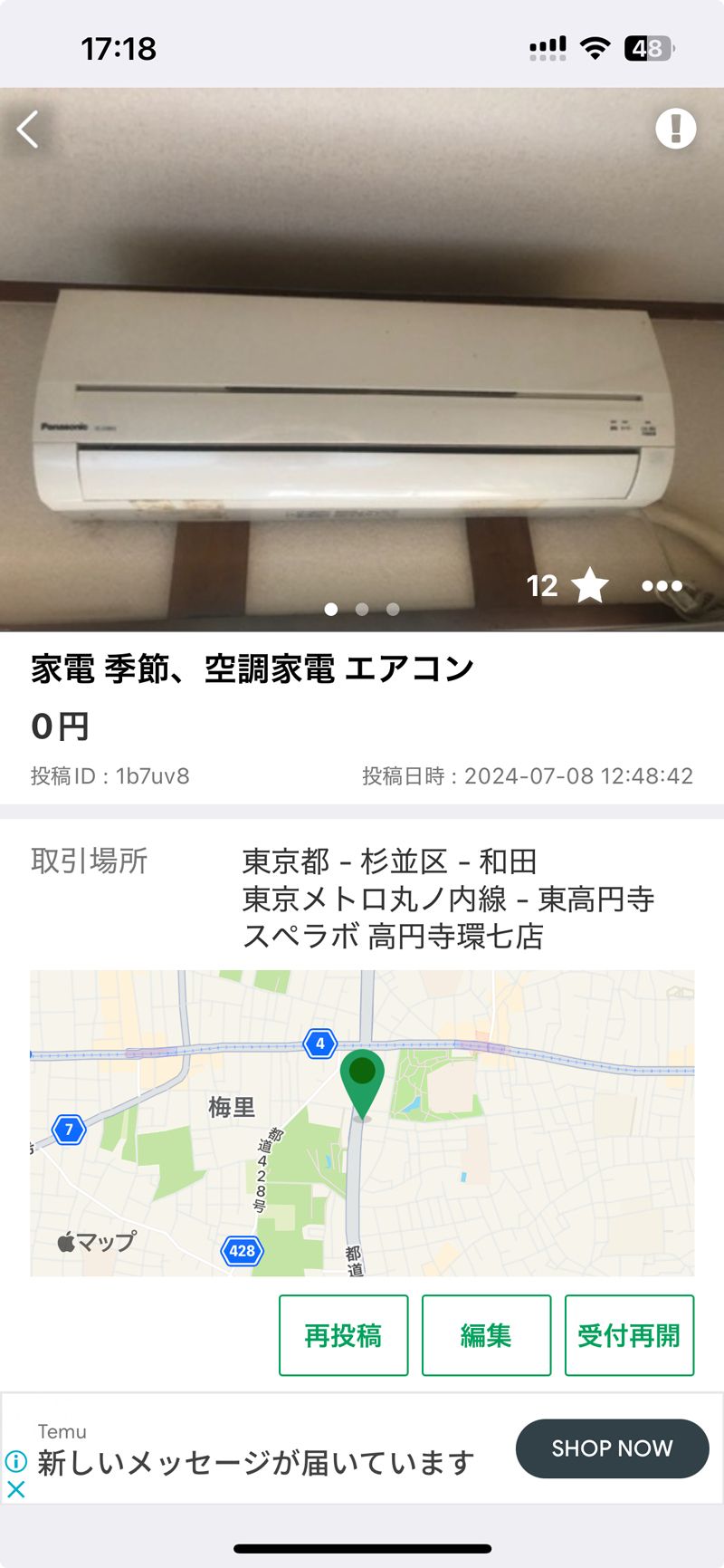 エアコンは「ジモティー」で無料で取り外し引き取ってもらうことができた。