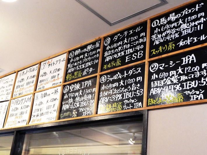 店内のメニュー。スッキリ系、ほどよい苦み系など、わかりやすく特徴が書かれている