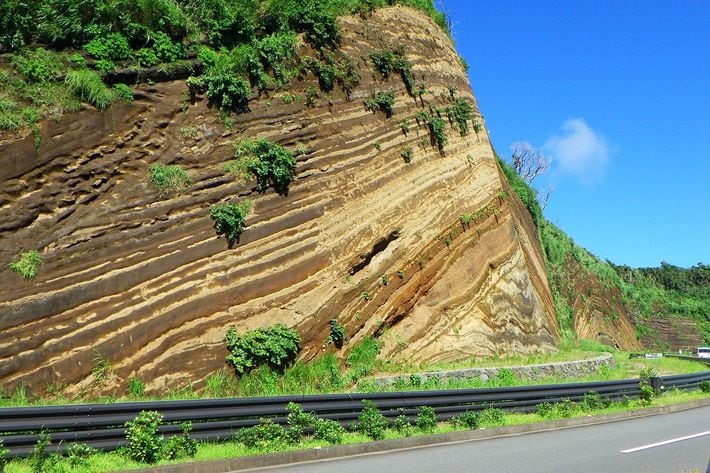 伊豆大島にある地層大切断面(写真=斑猫/CC-BY-SA-4.0/