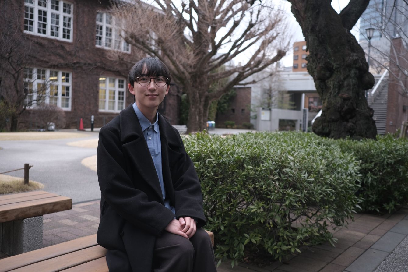 4年間通った立教大学のキャンパスのベンチに腰掛ける新濱さん