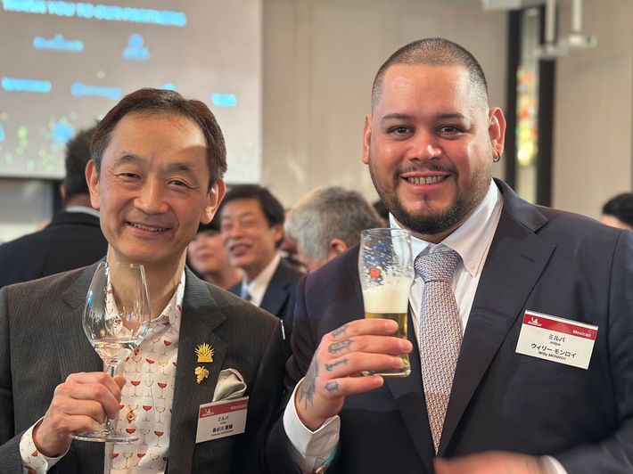大阪「ミルパ」のウイリー・モンロイシェフ(右)と彼を支える海外の名店での経験も豊富なソムリエ、長谷川憲輔さん(左)。筆者はたまたまこの前夜、「ミルパ」で食事をする幸運に預かったが、オープン1年未満というのに和気あいあいとした心地良いチームが印象的だった。