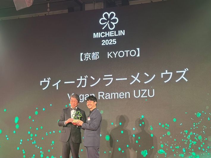 「ミシュラングリーンスター」は、持続可能な飲食のあり方に貢献している店に与えられる。若手料理人の中には、星よりもこちらが“クール”だと言って目指す人もいるほど。初めてラーメン業界からこの賞を受賞したヴィーガンラーメン店「ウズ」が会場でも話題に。