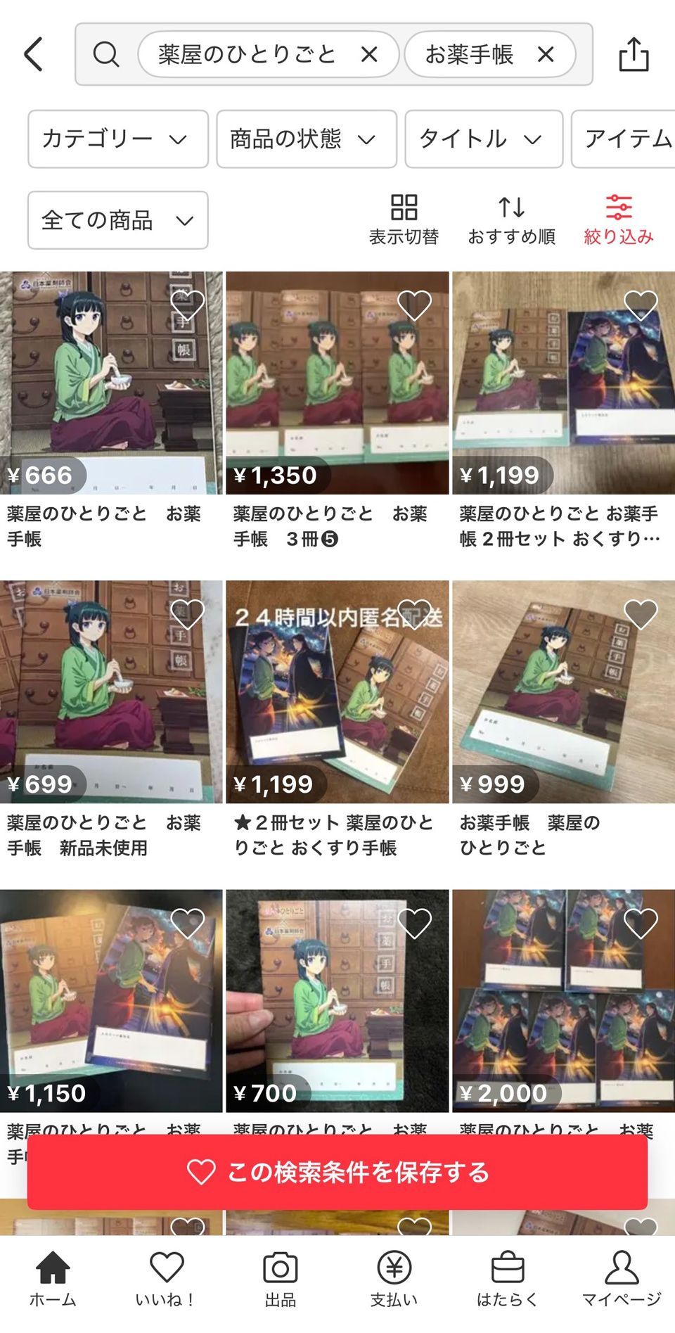 メルカリに出品された『薬屋のひとりごと』コラボのお薬手帳