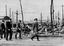 空襲の後、焦土となった都内を視察する昭和天皇=1945年3月18日、東京都の富岡八幡宮境内[出典=『