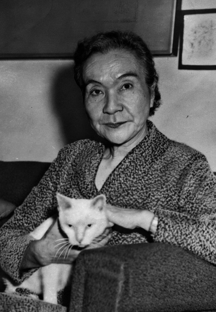 ソ連から帰国し、記者会見する岡田嘉子=1972年[出典=『
