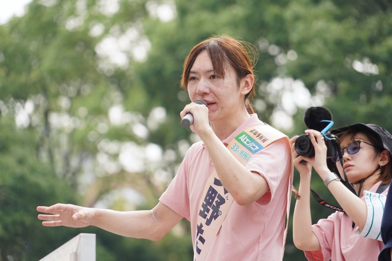 ヨドバシカメラ上野店前で演説する安野貴博さん(写真=Noukei314/CC-BY-SA-4.0/