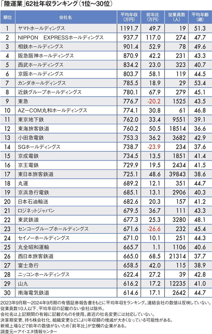 ホテル・レジャー事業で驚異の営業利益700%増の鉄道会社が5位…平均年収が高い「陸運業」ランキング2024