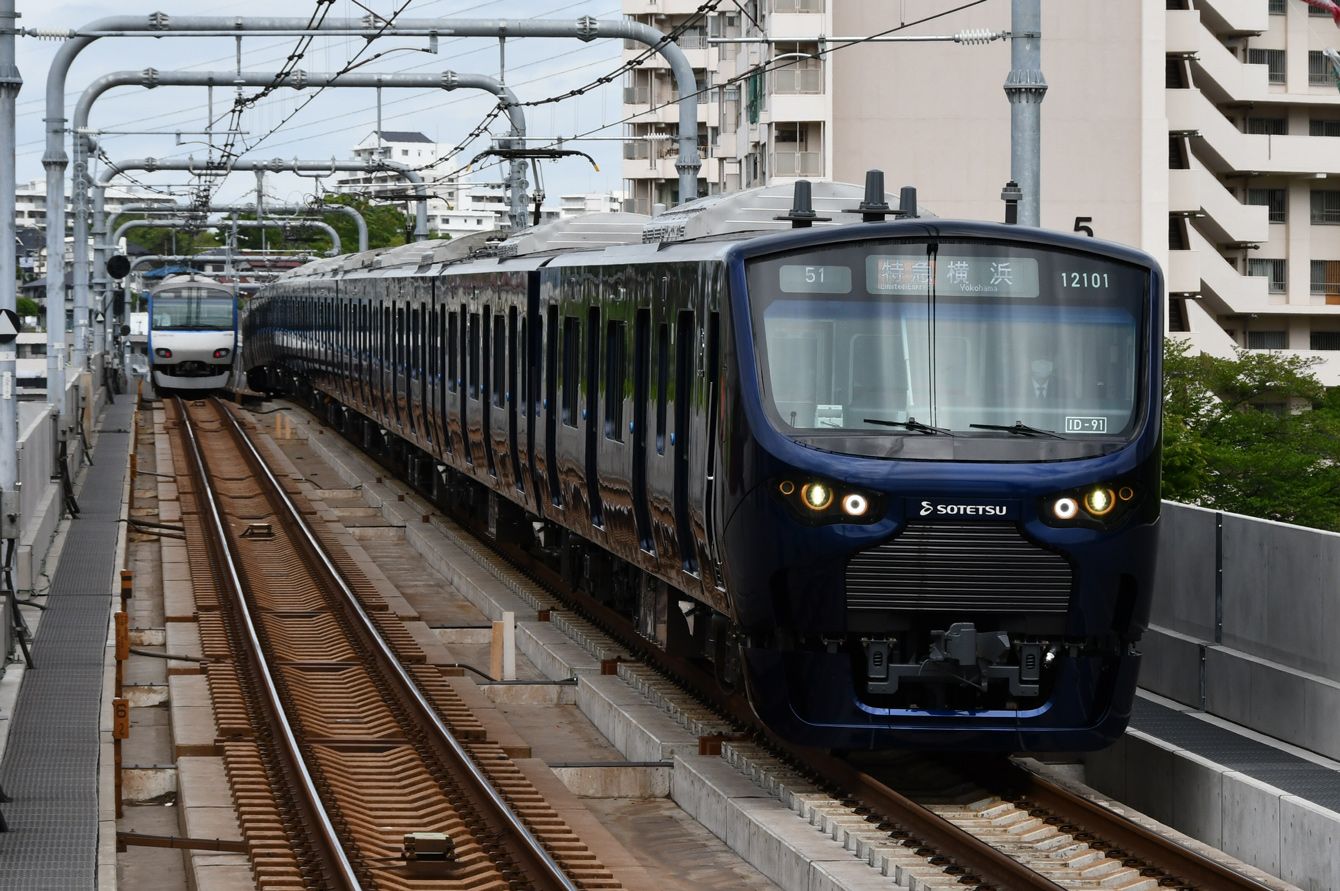 相鉄本線を走行する特急列車(2019年4月29日 星川駅―天王町駅間)(写真=長門早苗/CC-BY-SA-4.0/
