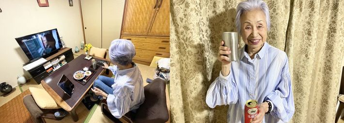 晩酌タイムは、いつもの定位置で。「もう、いい年だし、病気を探すことはしないの」(大崎さん)