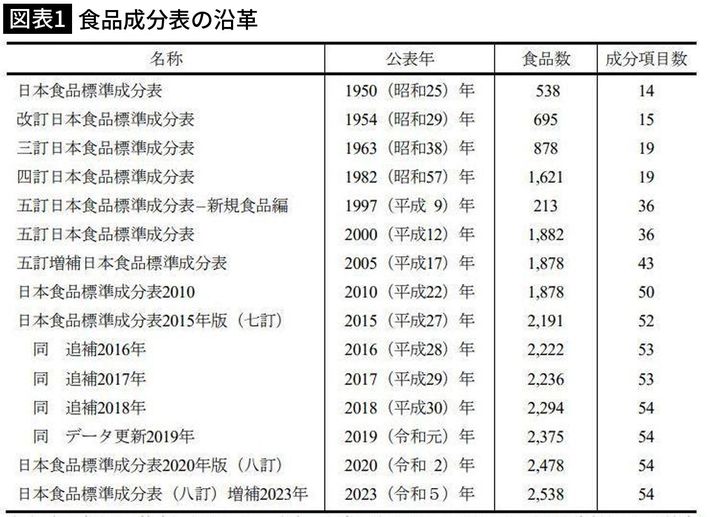』(八訂)増補2023年「食品成分表の沿革」より