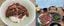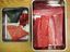手前が血合いのニンニクレアステーキ。奥がスジの多い赤身のステーキ。バラ色の食卓!