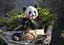 竹を食べるジャイアントパンダ「結浜」=2025年4月24日午後、和歌山県白浜町のアドベンチャーワールド