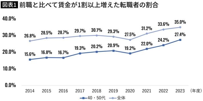ミドル世代の転職動向 転職時に賃金が1割以上増えた割合は10年間で11.8pt増加転職の背景やキャリアの築き方を事例で紹介