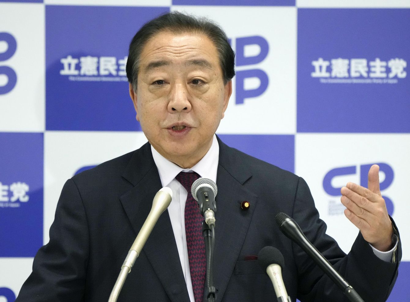 記者会見する立憲民主党の野田代表=2025年5月2日午前、国会