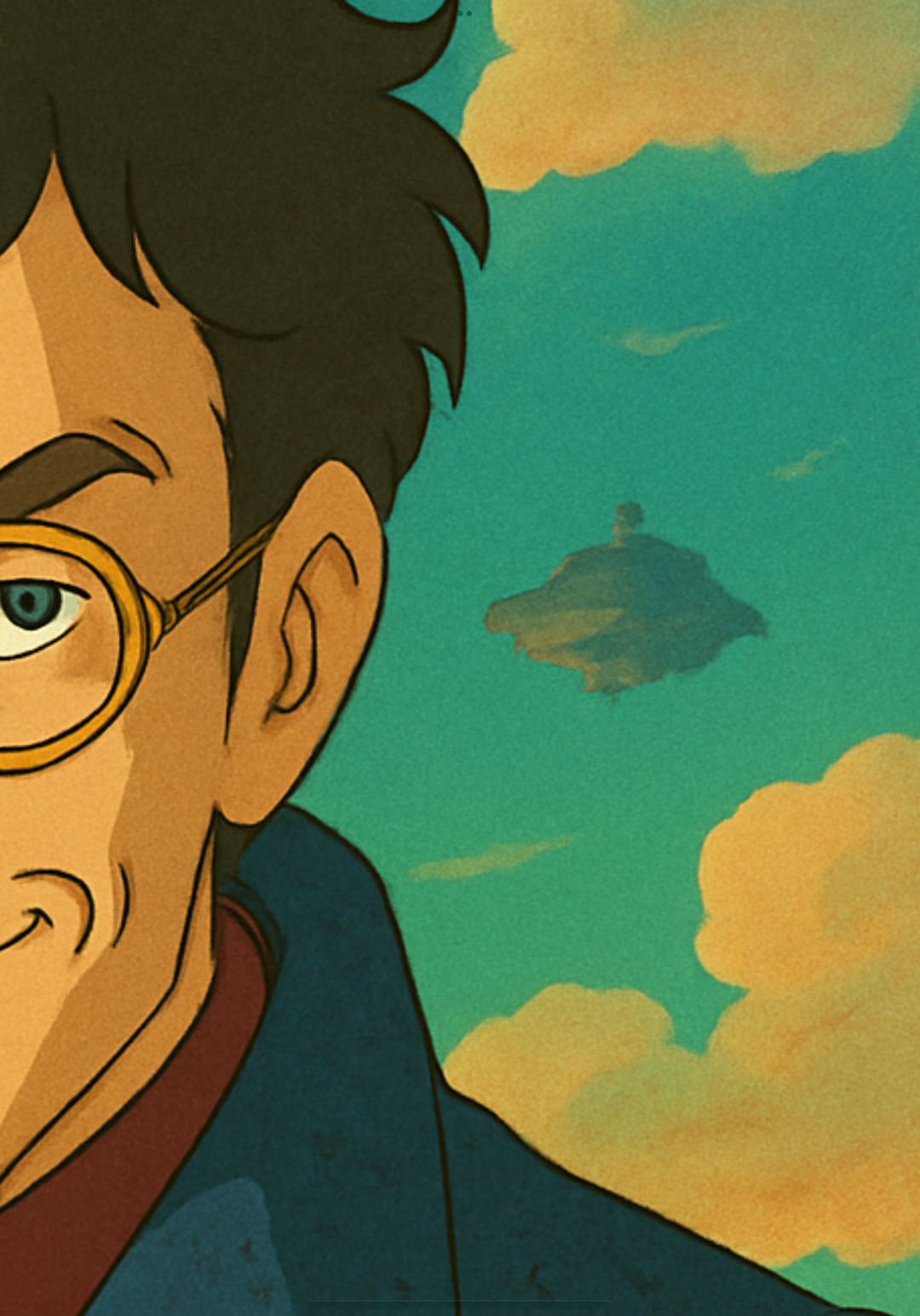 【画像1】左の写真を「『天空の城ラピュタ』風に描いて」と頼んでできたのが右の画像