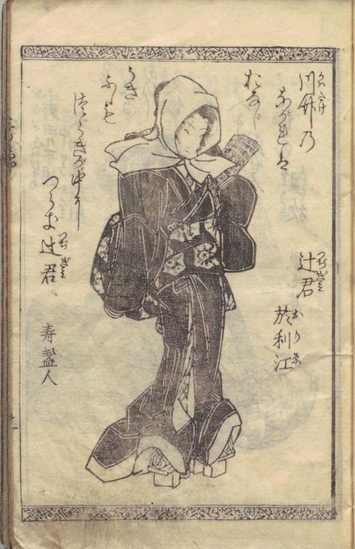 江戸時代の書籍に描かれた夜鷹の姿。恋川春町二世作 ほか『忠臣再講釈 6巻』、山口屋藤兵衛、天保3[1832].