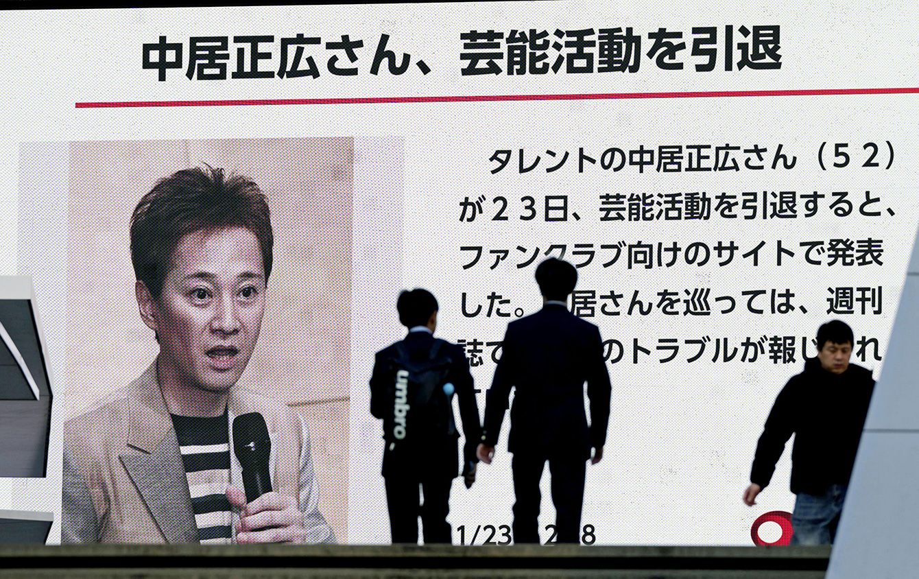 タレントの中居正広さんが芸能活動を引退することを伝える街頭モニター=2025年1月23日午後、東京・秋葉原