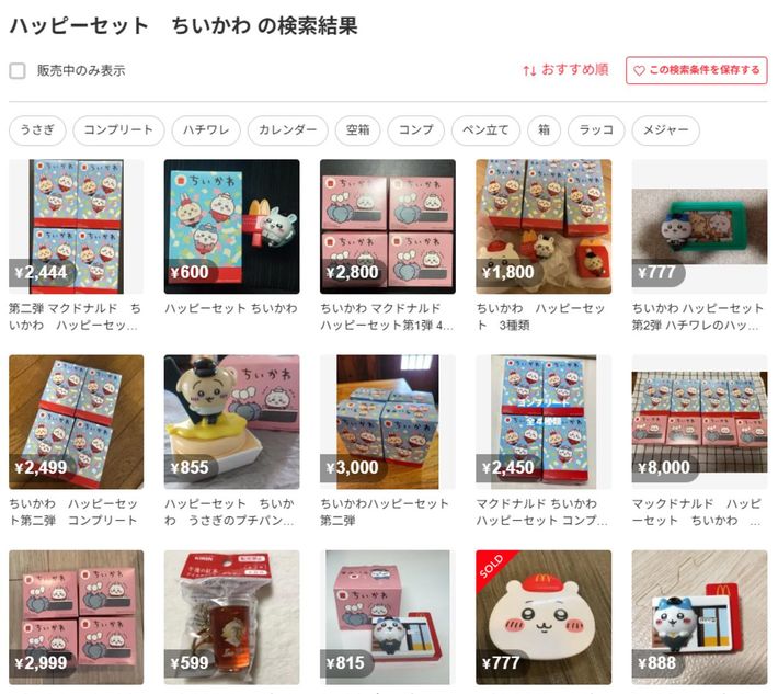 フリマサイトではちいかわハッピーセットが多数出品されている