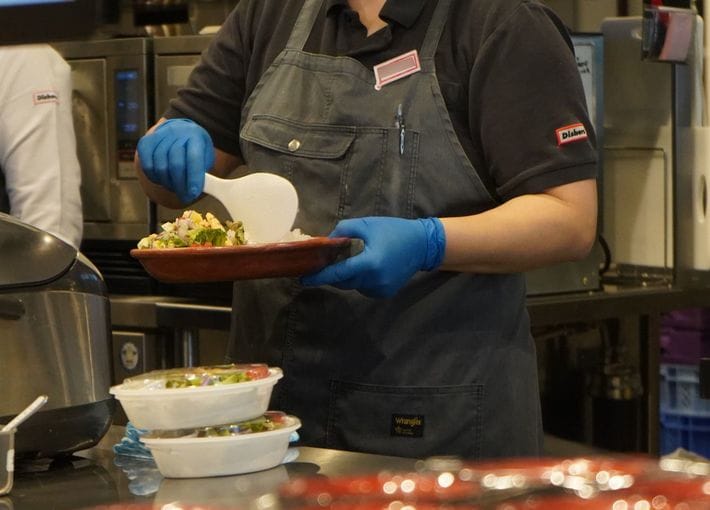 スタッフは「注文」を画像で見ながら盛り付けを行う