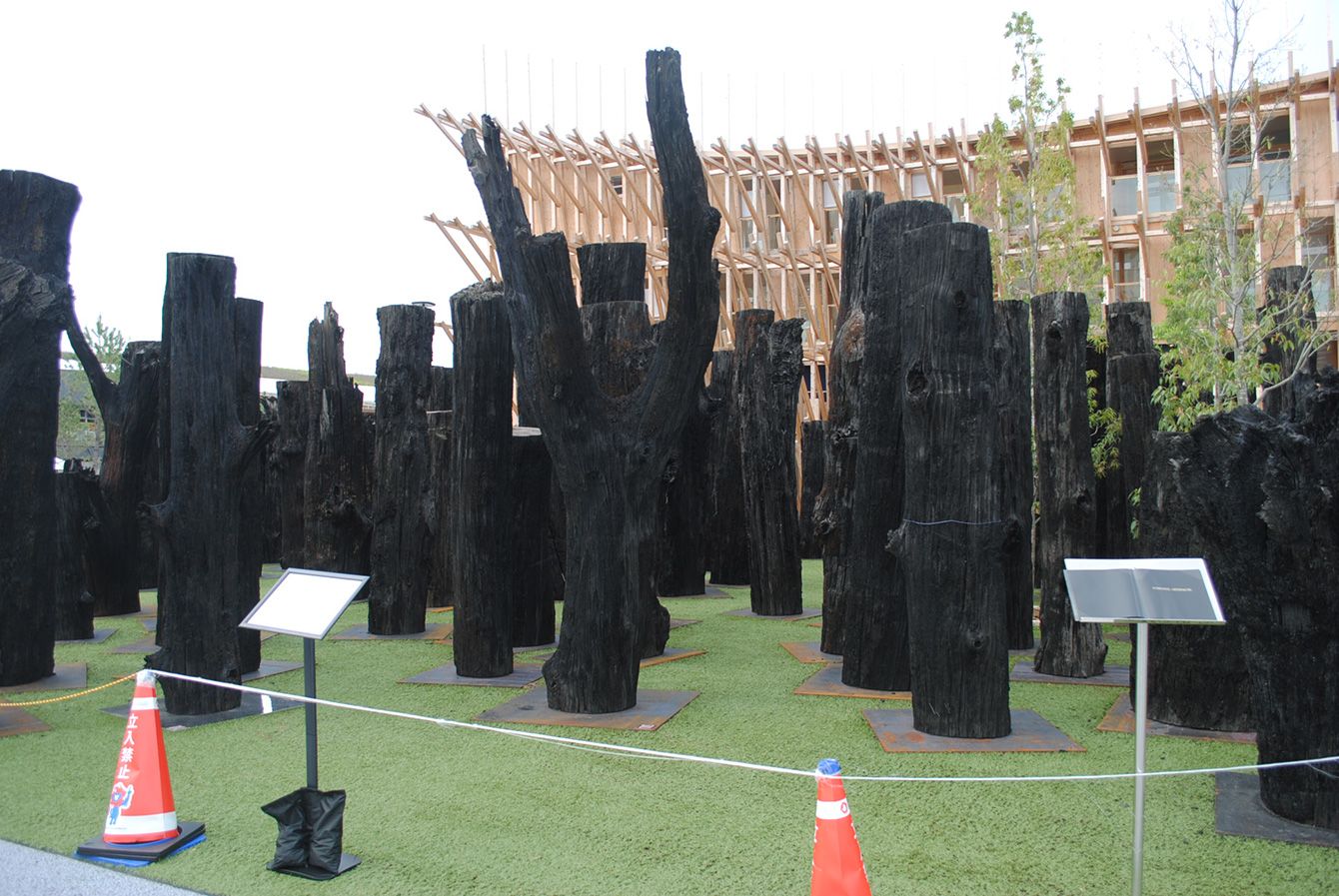 倒木の可能性の指摘を受け立入禁止になっているインスタレーション「文明の森」