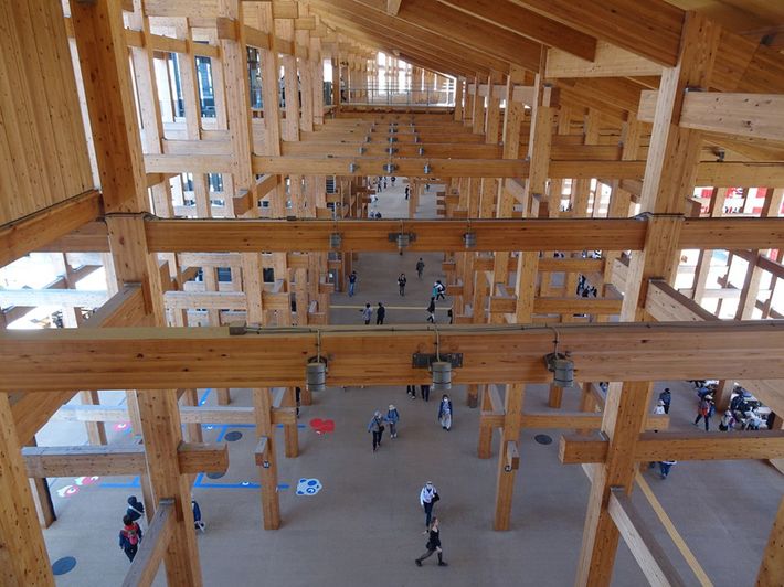 屋根材はCLTのパネル。厚さ90~150センチ。