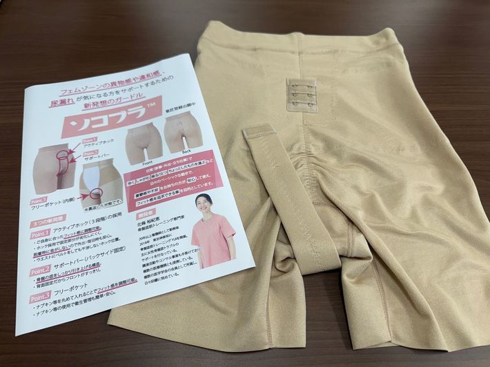 骨盤臓器脱や排尿障害の人向けに開発した新商品「ソコブラ」