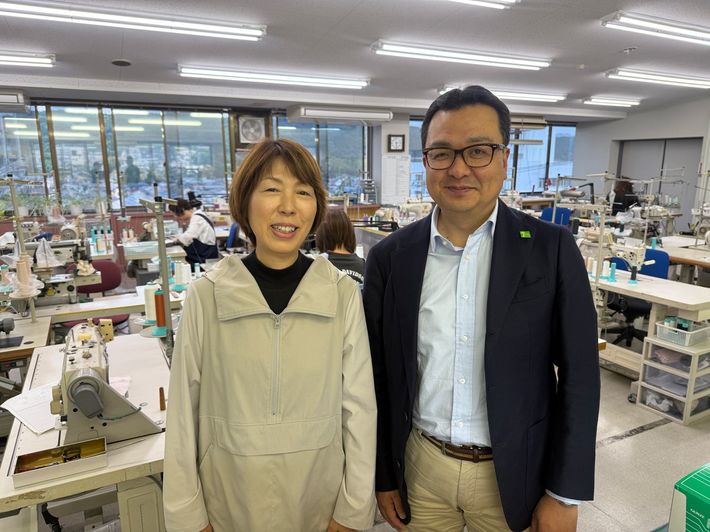 入社41年の小池京子さん(左)と嶋﨑博之社長