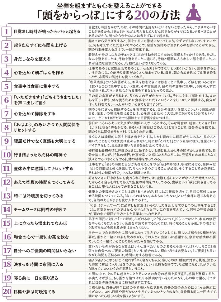 坐禅を組まなくても、心は調えられる…僧侶が教える「頭をからっぽ」にする20の方法