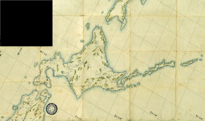 伊能忠敬原図『日本図』の蝦夷地、1827年(文政10)ごろ。[