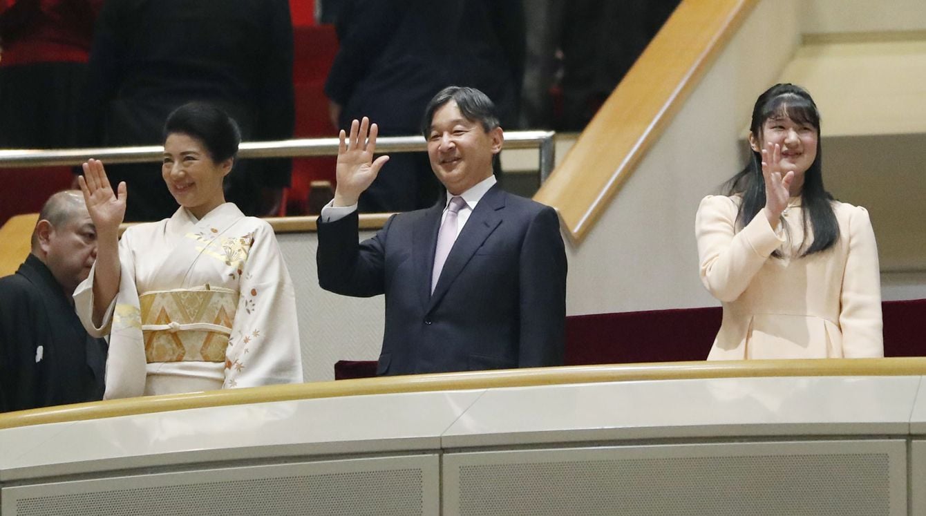 大相撲初場所を観戦のため、両国国技館を訪問された天皇、皇后両陛下と長女愛子さま=2020年1月25日午後、東京都墨田区