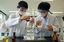 サイエンスセンターで実験中の中1生