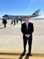 大統領に同行取材する際のジョン・デッカー(Jon Decker)さん。背景にアメリカ大統領専用機エアフォースワンが見える(ジョン・デッカーさん提供)