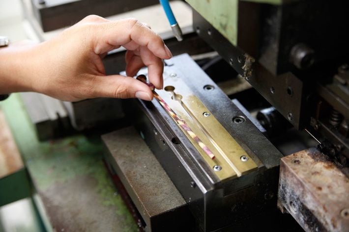 セルロースアセテートを加工する様子。