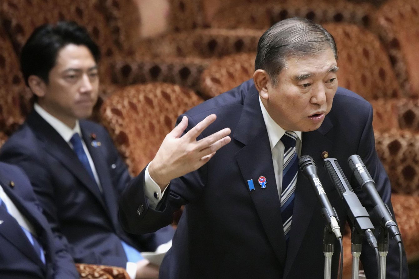 参院予算委の集中審議で答弁する石破首相。価格が高止まっているコメを巡り、自らを議長とする関係閣僚会議を設置すると表明した。左は小泉農相=2025年6月2日午前