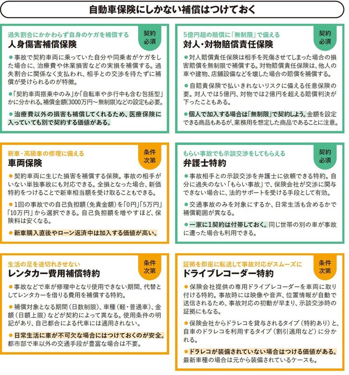 「弁護士特約」は絶対必要、「入院一時金」は再考すべし…「自動車保険」いる補償、いらない補償