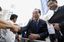 街頭演説を終え、有権者と握手する立憲民主党の野田佳彦代表(中央)(=2025年6月13日、東京都大田区)