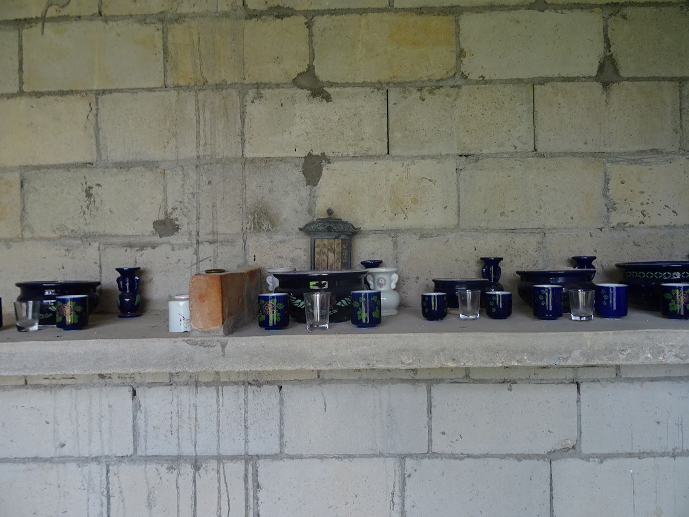 「祠」の中には位牌や香炉、湯飲み茶碗などが置かれている
